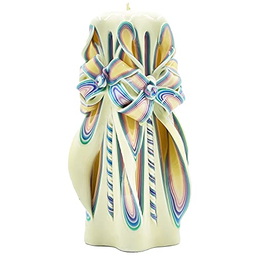 Details: PRETTY AND PRACTICAL Make your Havdalah memorable with a Carved Havdalah Candle. Made of 100% paraffin wax, these candles are hand-crafted to deliver a flame source that performs as beautifully as it looks. These standalone candles stand upright on any flat surface. No more hot wax dripping down your hand! These candles should be lit for 5 -10 minutes at a time at most. Our Ripples N’ Waves carving features circular wave-like folds extending vertically down the length of the candle. Our Flower Petals carving has petal-like layers of wax “folded” in a crisscross pattern on its lower half. Our Twist Tie carving features “ribbons” of wax “tied” into beautiful bow-like forms at the top. Our Flame carving has circular ripples with a hollow section. PRODUCT FEATURES: 100% Paraffin Wax Hand Crafted 4 Designs: - Ripples N’ Waves - Flower Petals - Twist Tie - Flame Sizes: 8” Tall with 3” Diameter Colors: Multi - Assorted Colors - Purple, Blue, White, Ivory A PERFECT PRESENT Visiting someone’s house for Shabbat? What better way to thank your host than with this beautiful Havdalah candle that will last for many Saturday Nights to come. Packaged in a clear gift box that showcases their vivid colors and unique shapes, these candles are candy for the eyes that is sure to delight the recipient.